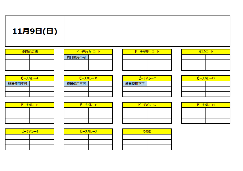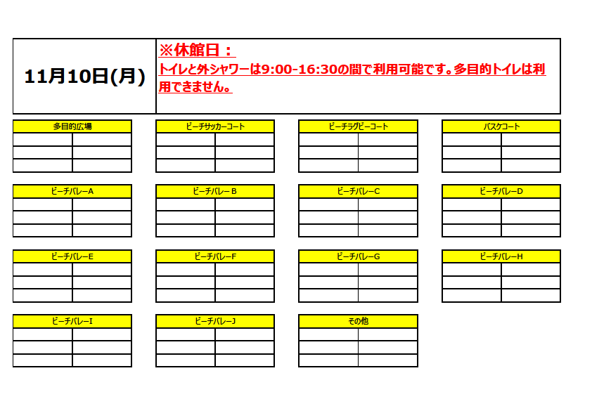 占有利用予定(一般利用出来ない場所・時間)