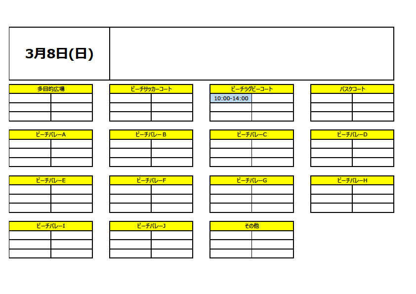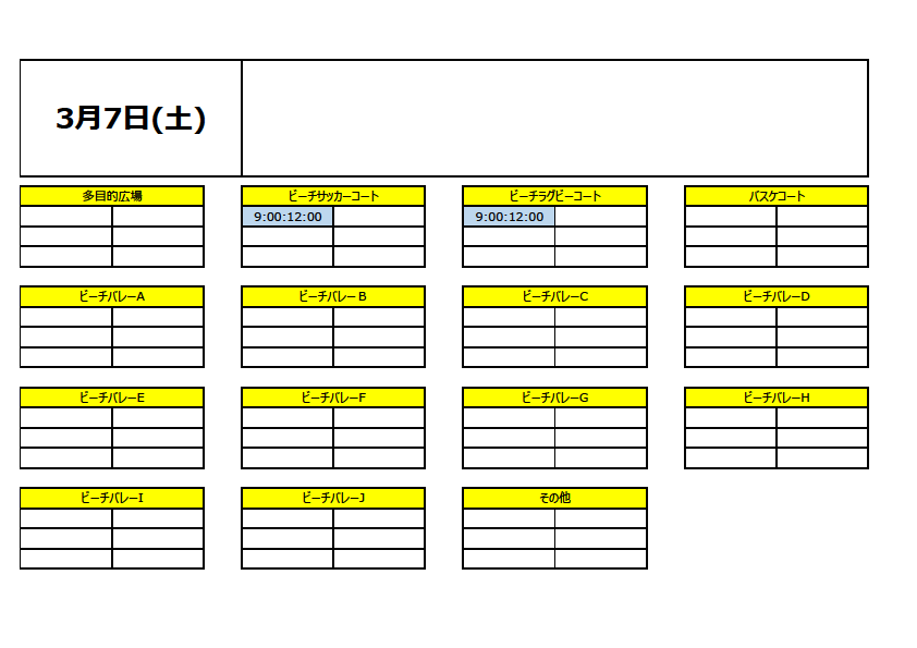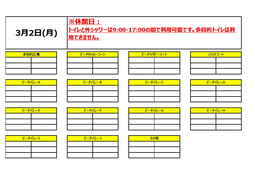 占有利用予定(一般利用出来ない場所・時間)